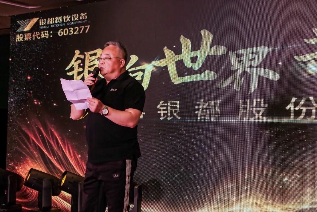 隨后,代理商們來到了銀都股份公司內正式開展會議議程。銀都股份董事長周俊杰先生發表開場致辭,發言中他提到的了銀都股份在發展歷程中取得的成績,并表示在如今市場變革環境下餐飲設備行業遇到的新挑戰,同時周俊杰董事長結合全球經濟走勢和行業發展趨勢,明確了未來銀都的創新模式和發展方向,傳達了攜手共進、共創未來的信心和決心。